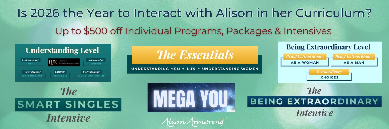 “Alison Armstrong is the real deal. I don’t know anyone else who understands men and women the way that Alison does. She has directly impacted my life and helped me take my relationship from awesome to OUTSTANDING! I love her so much!”